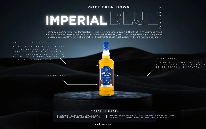 - Current Range: Imperial Blue 750ml Price in Kolkata averages ₹680–₹750 across authorized retailers