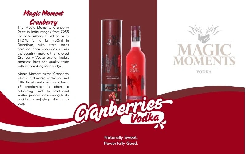 Direct Answer: The Magic Moments Cranberry Price in India ranges from ₹255 for a refreshing 180ml bottle to ₹1,045 for a full 750ml in Rajasthan, with state taxes creating price variations across the country—making this flavored Cranberry Vodka one of India’s smartest buys for quality taste without breaking your budget.